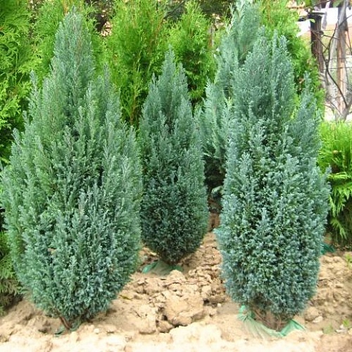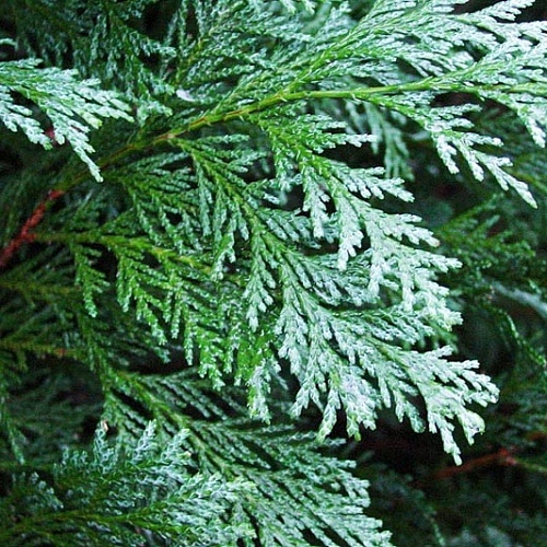 Кипарисовик Alumii - узкая колонновидная форма с хвоей голубовато-стального цвета. Дерево до 15 м высотой. Побеги на молодых растениях направлены вверх, на старых - отстоящие от ствола. Ветви плотные и многочисленные, плоские. Хвоя молодая - голубая, позже -серо-голубая.