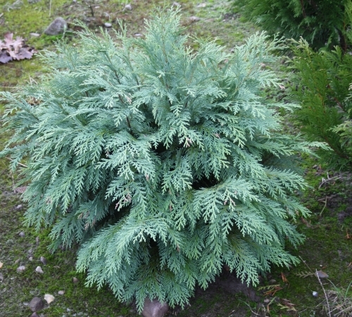 Кипарисовик Globosa - карликовый сорт. В 10 лет высота около 1 м. Крона округлая, приплюснутая. Веточки расположены горизонтально, крупные, рыхлые, со свисающими концами. Хвоя голубовато-зеленая, чешуевидая.