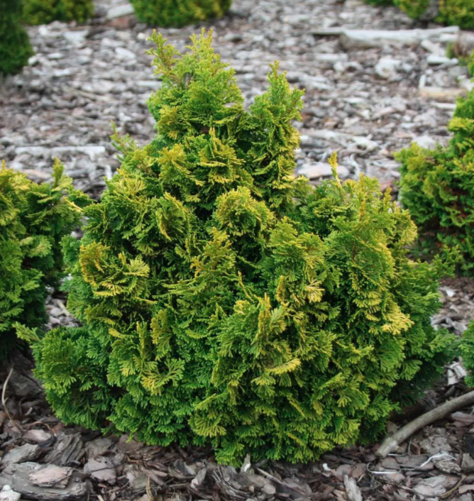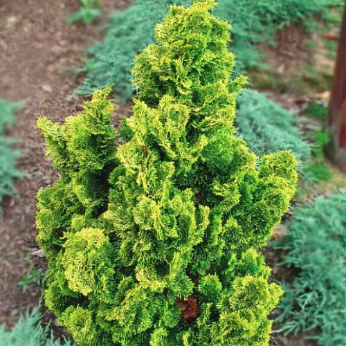Кипарисовик тупой Аврора - специфический и очень интересный сорт, который заслуживает самых видных и теплых местечек в саду. Растение действительно обожает солнце и всеобщее внимание. Эти два фактора придают ему еще больше сил и энергии для наращивания спирально закрученной кроны. Выдержанная в форме широкого конуса, она медленно устремляется вверх, намного более интенсивно разрастаясь в ширину. Взрослый кипарисовик тупой Aurora – уникальное растение, яркая изумрудно-зеленая хвоя которого буквально искрится под солнечными лучами. Хвоинки кипарисовика очень мягкие и послушные. Повинуясь сортовым обязанностям, они растут в строго определенном порядке и направлении, формируя своеобразные веера. Последние складываются в удивительной красоты спиральные композиции, их которых и состоит вся крона растения