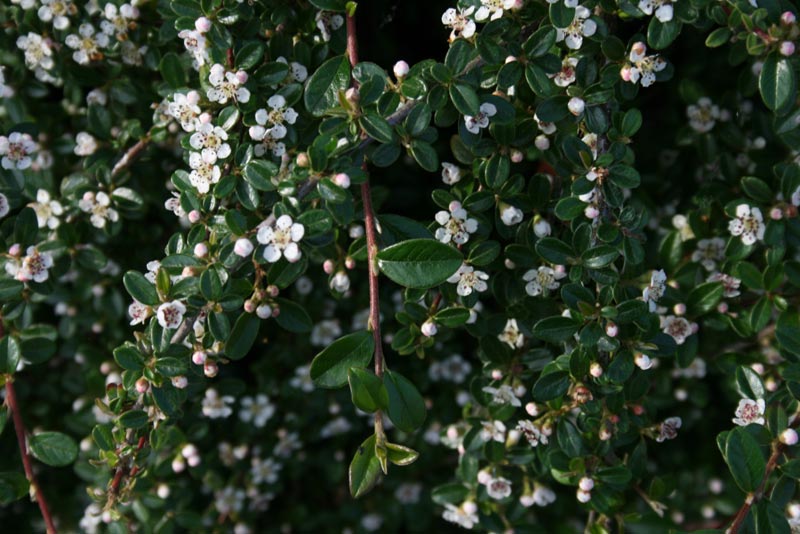 Кизильник Mooncreeper - вечнозеленый кустарник со стелющимися по земле и часто укореняющимися побегами, высотой до 10 см и шириной до 100 см. Листья и цветки мелкие. Плоды мелкие шарообразные, карминно – красные, созревают в сентябре.