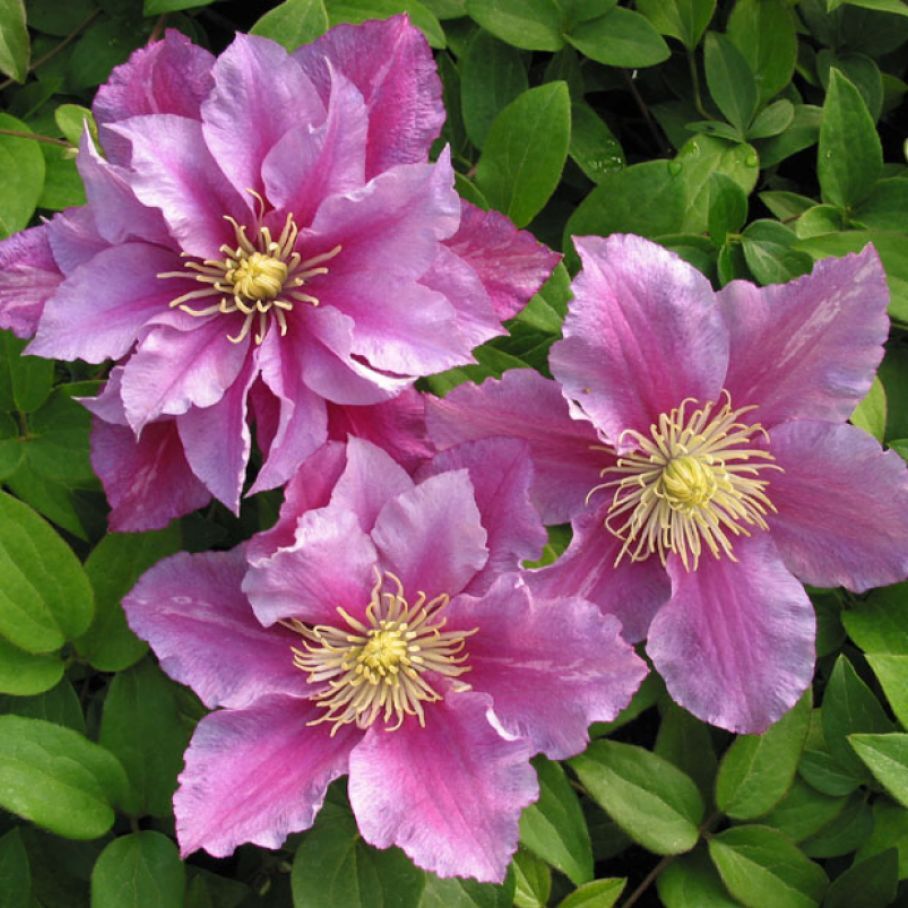 Клематис крупноцветковый Пиилу вырастает до высоты 1,5 метров, а при цветении диаметр бутонов достигает 15 см. Яркие и благоухающие цветы станут настоящим украшением вашего сада, они неприхотливы в уходе, морозостойкие и засухоустойчивые. Для высадки необходима плодородная почва, а также минеральные удобрения. Клематис крупноцветковый Пиилу любит солнечный свет и не получает от него ожогов, но хорошо растет и в притенённом положении. Нуждается в подрезке один раз в год, перед зимой. Цветение очень пышное, практически затеняет листву, которой цепляется за корешки или другую поверхность. Может использоваться для декорирования беседок.