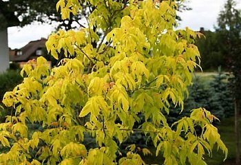 Клен Odessanum - небольшое листопадное дерево или крупный, быстрорастущий, кустарник, с ассиметричной округлой форма кроны, достигающий в высоту до 4 метров и до 3 метров в ширину, с молодыми белоопушенными побегами, которые позднее становятся темно-зелеными. Молодые листья растения окрашены в рыжеватый цвет, но со временем яркость их усиливается, они становятся золотисто-желтыми. Цветки кустарника двух видов: мужские – с пыльниками красного цвета и женскими- зеленоватые в кистях.