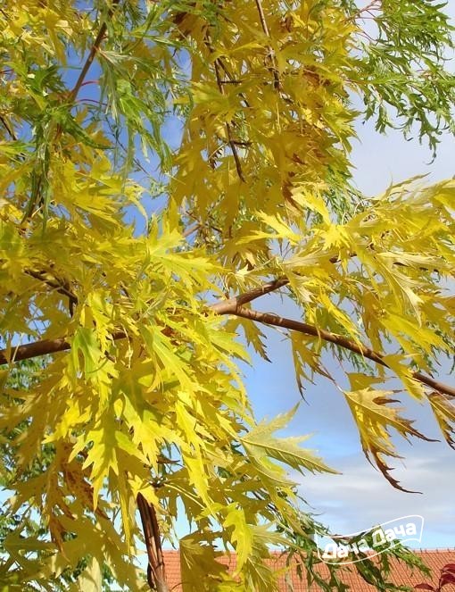 Клён остролистный Лациниатум на штамбе (Acer platanoides Laciniatum) - компактное лиственное дерево, глубоко рассеченными листьями, кончики лопастей сворачиваются в виде "когтя", осенью становится ярко-желтой. В виде штамбового дерева не превышает 4-6м, в зависимости от высоты прививки. Кора темно-серая с трещинами. Лучшее место для посадки - солнечное, защищенное от холодных ветров. Предпочитает влажные дренированные почвы. Устойчив к городским условиям. Скорость роста быстрая