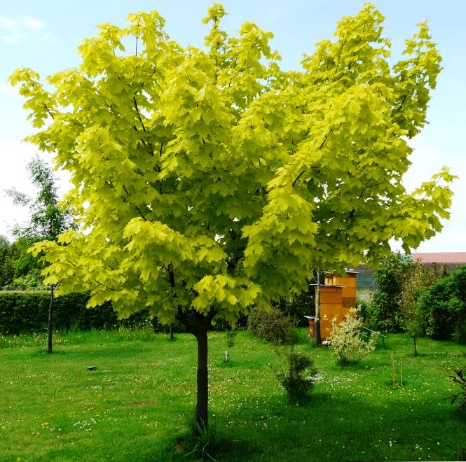 Великолепный клен с листьями желтой окраски, меняющими свои оттенки в течение всего сезона. Весной он – золотисто-желтый, летом – зеленовато-желтый с золотисто-желтыми приростами, а осенью – ярко-желтый!