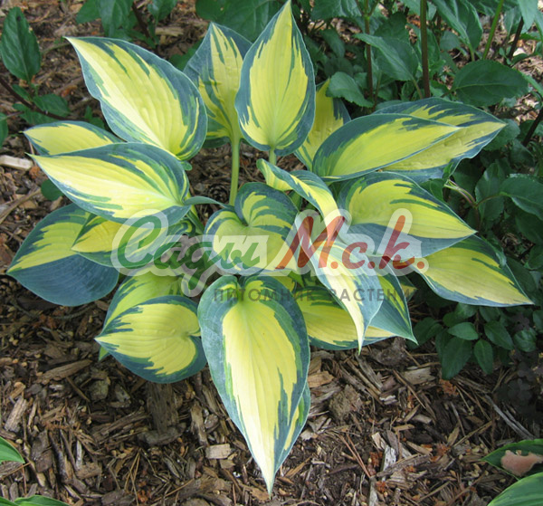 - Характеристики листья сердцевидные с заостренным краем, центр листа темно-зеленый с голубым оттенком, кайма широкая сливочно-желтая