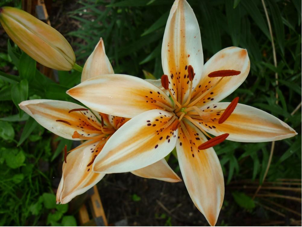 Лилия Orange Electric - очень красивый сорт. Цветы необычной оскаски: белые с яркими оранжевыми полосами и темным крапом до середины лепестка. Диаметр цветка - 11-15 см. Цветение этой лилии приходится на начало июля. Высота растения варьируется от 90 до 120 см.