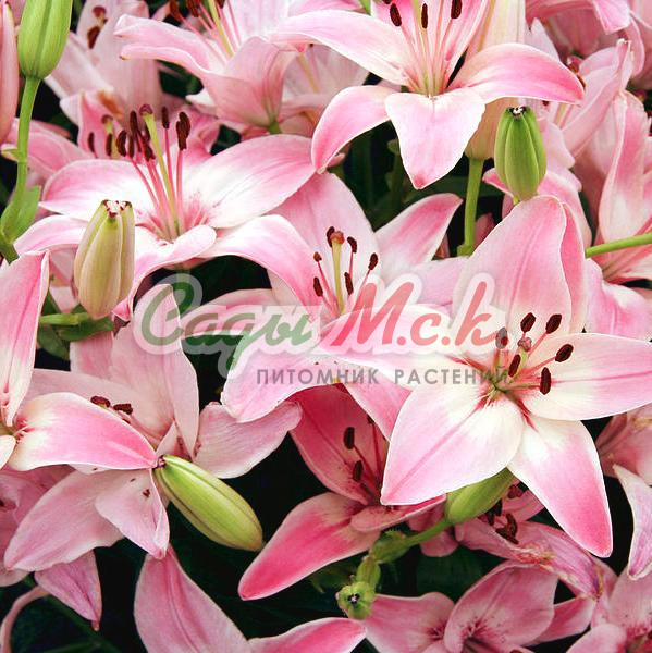 Лилия азиатская "Хартстрингс" - высота растения до 80 см. Цветки крупные, розового цвета с оранжево-жёлтой серединой. Зацветают во второй половине июня-июля. Довольно неприхотливый гибрид, отличается морозостойкостью. Для посадки Лилии азиатской Хатстрингс выбирают солнечные места, слегка затененные. На зиму почву мульчируют торфом или сухими листьями.