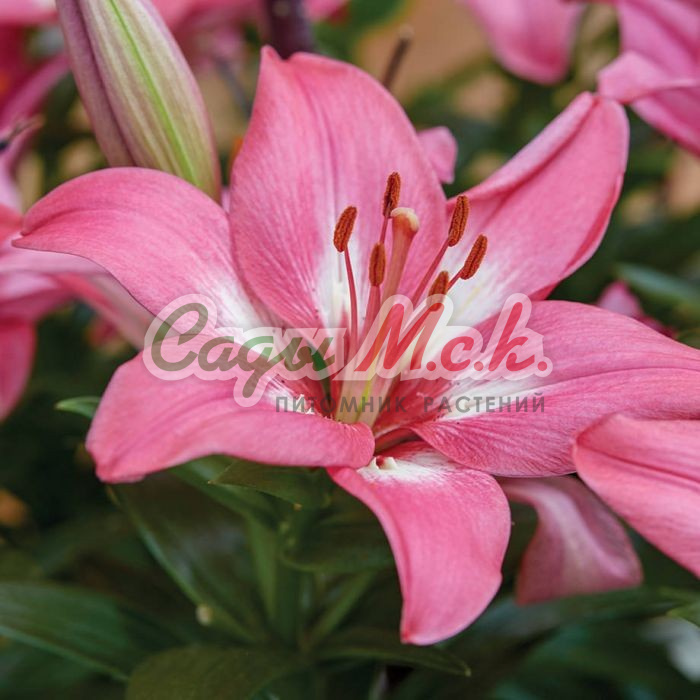Лилия азиатская "Хартстрингс" - высота растения до 80 см. Цветки крупные, розового цвета с оранжево-жёлтой серединой. Зацветают во второй половине июня-июля. Довольно неприхотливый гибрид, отличается морозостойкостью. Для посадки Лилии азиатской Хатстрингс выбирают солнечные места, слегка затененные. На зиму почву мульчируют торфом или сухими листьями.
