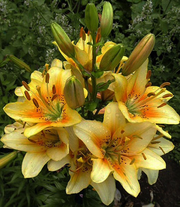 Лилия Luxor - азиатский гибрид. Цветки светло-желтые с оранжевым румянцем и коричневым крапом в горле. Зацветают в июле. Высота взрослого растения - до 100см. Эта лилия неприхотливая, обильноцветущая.