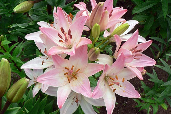 Лилия Marlene азиатская гибридная. Растение неприхотливое и простое у выращивании. В высоту может достигать около 100 см. Цветки крупные, диаметром 10-15 см. С одной луковицы может развиваться один сильный стебель, на котором образуется до 15 цветков.Цветки розовой окраски, однако в центре имеют бледно-желтый цвет. Растение на лепестках в нижней части имеет небольшие темно-красные пятна. Цветение начинается в конце июня. Эта лилия прекрасно подходит для срезки и в весе сохраняет свежесть и стойкость достаточно длительное время.