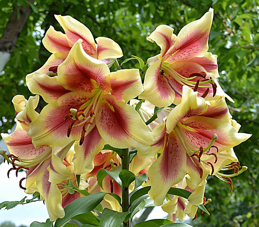 Лилия Holland Beauty - двухцветный цветок с преобладающим красным цветом и желтым по краям лепестков. Присутствует легкий красный крап. Края лепестков волнистые и немножко заокруленные. Период цветения - август.