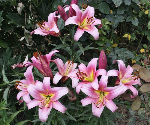 Лилия Space Mountain - гибрид. Высота - 105см. Листья темно-зеленые. Стебель высокий, темно-зеленый с 9 цветками. Внутренняя сторона цветка сильно\умеренно пурпурно-красная, лепестки желто-зеленые у основания, центральная жилка в основании желтая; внешняя сторона пурпурно-красная. Крап и папилломы присутствуют. Нектарники зеленые. Рыльники коричневые. Рыльце пурпурное с зеленой звездой. Размер лепестков короткий или средний, края слегка волнистые, кончик загнут.