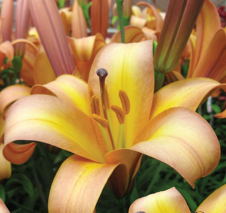 Луковицы лилии трубчатой Расти Планет (Lilium trumpet hybrids Rusty Planet) придутся по вкусу любителям оригинальных пастельных тонов. Взрослое растение достигает 120 см, а его стебли очень прочные и не нуждаются в опоре. Сорт можно выращивать как в теплице, так и в открытом грунте — достаточно соорудить укрытие на зиму и подкармливать его минеральными удобрениями. Период цветения наступает в июле и в августе. На длинных стеблях появляются группы цветов, до 15 штук на одном цветоносе. Они сразу привлекают внимание необычным окрасом: лепестки нежно-персиковые с яркой желтой полосой в центре. Благодаря нейтральному оттенку лилии отлично смотрятся отдельно или в крупных массивах.