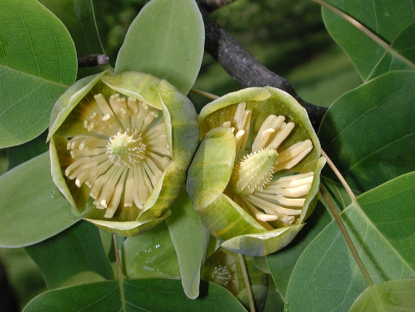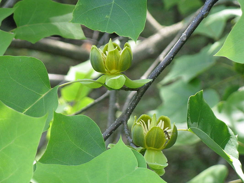 Дерево высотой до 15 м., Листовые пластины отличаются от родственного вида более глубокими и сильнее заостренными боковыми лопастями. Снизу листва серебристая и бархатистая на ощупь, будто тополиная. Цветы зеленоватые снаружи и лимонно-желтые изнутри, в окружности не больше 6-7 см.