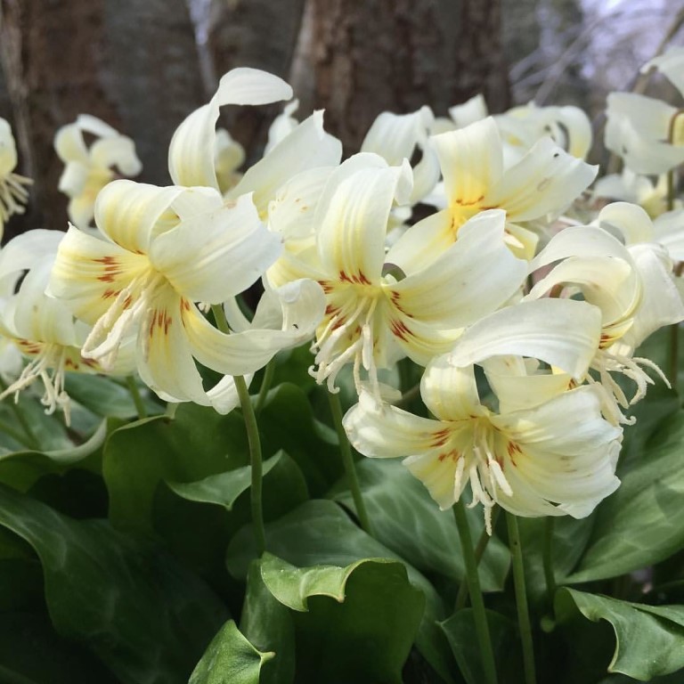 Кандык калифорнийский Уайт Бьюти – луковичное растение раннего срока цветения (начало весны), превосходно сочетающееся с другими первоцветами. Его отличительной особенностью является пёстрая листва, а также поникающие лилиевидные цветки белой окраски с коричневым рисунком. Кандык требует полутенистых или тенистых участков, а также влажной питательной почвы. Кандык калифорнийский Уайт Бьюти застоя влаги он, как и все луковичные, не выносит.