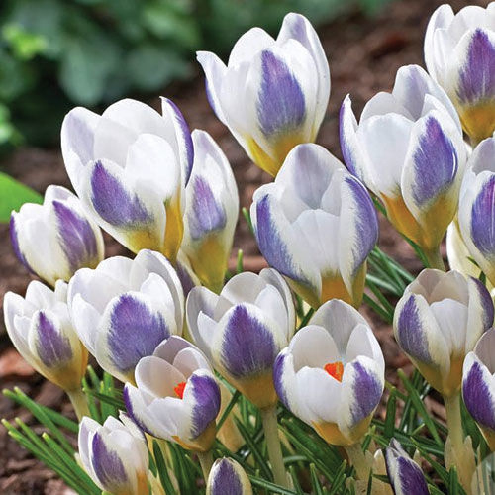 Крокус Блу Берд - раннецветущий, многолетний сорт. Луковицы крокусов среднего размера, отлично приживаются при любых климатических условиях, отличаются обильным цветением. Цветки среднего размера, бокаловидной формы, яркие белые лепестки по краям переходят в неожиданно фиолетовый оттенок. Крокус Блу Берд неприхотлив в выращивании, невысок, стебель прямостоячий, крепкий. Крокусы пользуются огромной популярностью из-за своей привлекательности, их выращивают в горшках в домашних условиях, в открытом грунте на клумбах, на балконе.