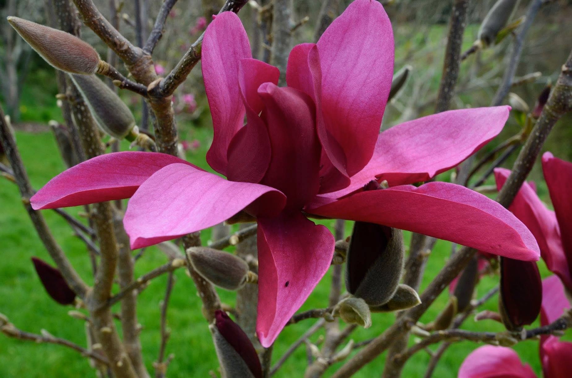 Колоновидная форма и небольшие размеры до 3 м. характеризуют этот сорт. Фантастические, крупные, с узкими лепестками цветы, что придает им схожесть со звездой. Внутренняя и наружная сторона лепестков однородно окрашена. Цвет бордово-красный, не уходит в синий, что свойственно гибридам нового поколения. Даже молодые растения начинают цвести. Место посадки – солнечное, защищенное от ветров. Почва кислая. очень морозостойкий сорт.