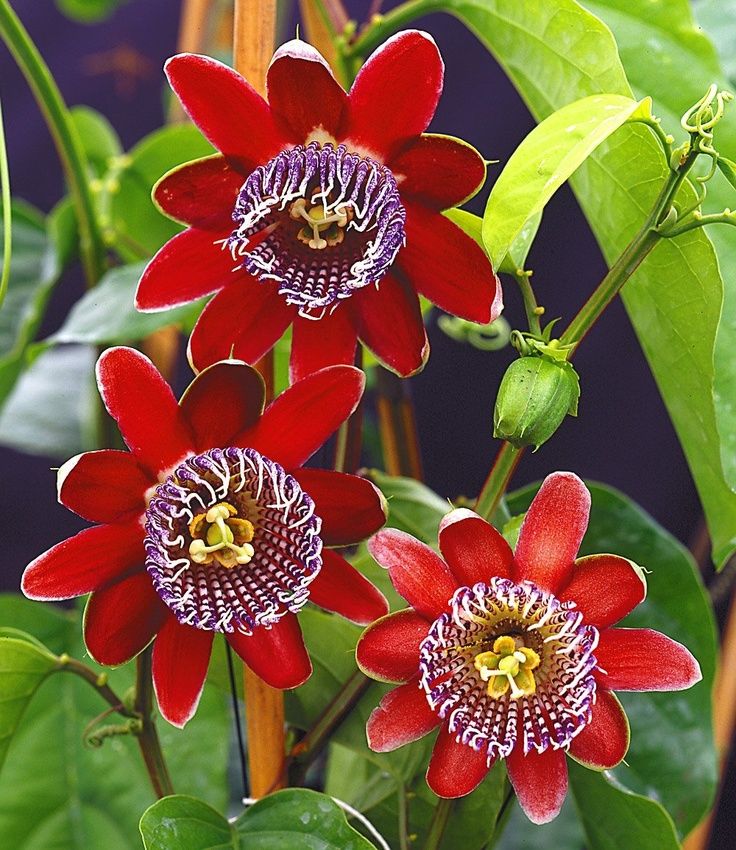 Прекрасная тропическая лиана с яркими цветами.Растение вечнозеленое достигает длины 6 м, цепляется за опору при помощи усиков. Цветы крупные около 12 см в диаметре, с широкими темно-красными лепестками и длинными тычиночными нитями. Плоды ароматные, крупные, оранжево-желтые при созревании.