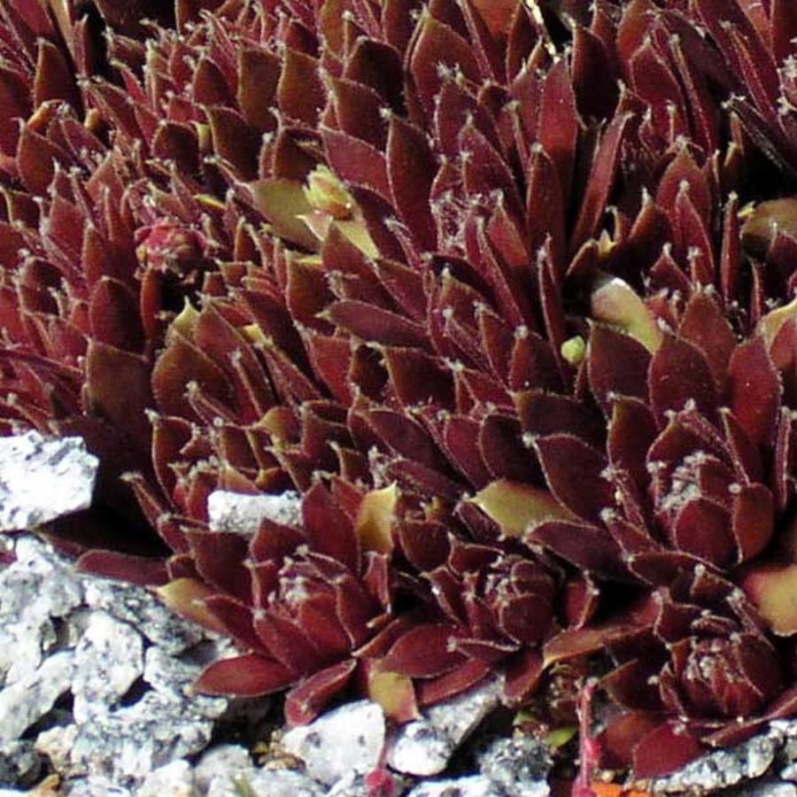 Молодило Red Delta - очень интересный сорт. Листья ворсинистые, удлиненные, заостренные, насыщенно-пурпурные. Молодые листочки отличаются зеленоватым окрасом.