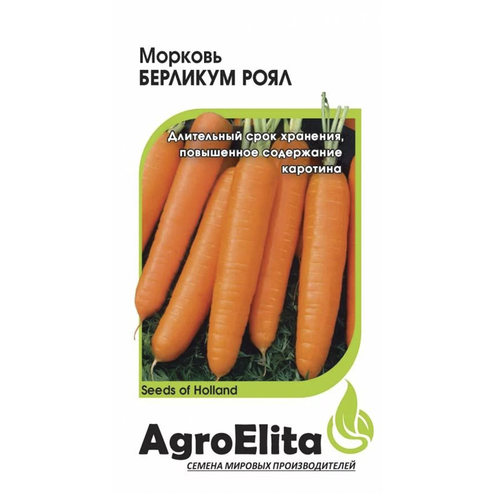 Позднеспелый сорт БЕРЛИКУМ РОЯЛ характеризуется неприхотливостью, устойчивостью к заболеваниям и способностью адаптироваться к климатическим условиям различных регионов, что делает его популярным среди огородников. Розетка листьев прямостоячая. Корнеплоды длинные, цилиндрические с тупым кончиком (сортотип Берликум), длиной 20-23 см и массой 120-190 г, с ровной головкой, сладкие, сочные, хрустящие и очень вкусные. Сердцевина и кора ярко-оранжевого цвета. Сорт отличается повышенным содержанием каротина и длительным сроком хранения урожая. Используют для приготовления овощных салатов, соков, детского пюре, добавляют в первые и вторые блюда. Выращивают посевом семян в открытый грунт в конце апреля-начале мая на глубину 1 см, расстояние между рядками 15 см. Подросшие всходы прореживают, оставляя между растениями по 5-7 см. Морковь нормализует обмен веществ, укрепляет иммунитет, благоприятно сказывается на зрительной функции. Урожайность 1,2-3,6 кг/м2.