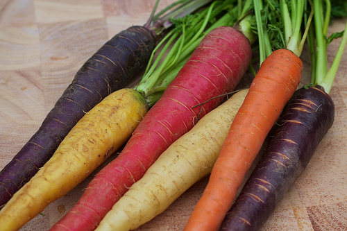 Морковь Rainbow Bunch - прекрасный радужный сорт. Корнеплоды конические, очень крупные, длиной от 25 до 40 см. Окрас плодов может быть белым, желтым, оранжевым, красным, фиолетовым и даже черным. Вкус и аромат отличные.