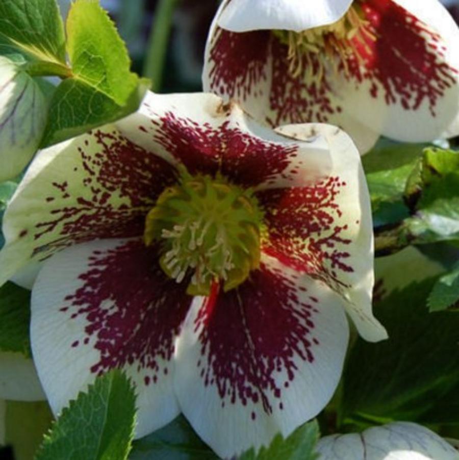 Морозник White Lady Spotted - вечнозеленый многолетник до 50 см высотой. Листья зимующие, очень плотные, кожистые, благородного темно-зеленого цвета. Цветение обильное. Цветы белые, обильно испещренные темно-красными краплениями в центрах. Морозостойкий сорт.