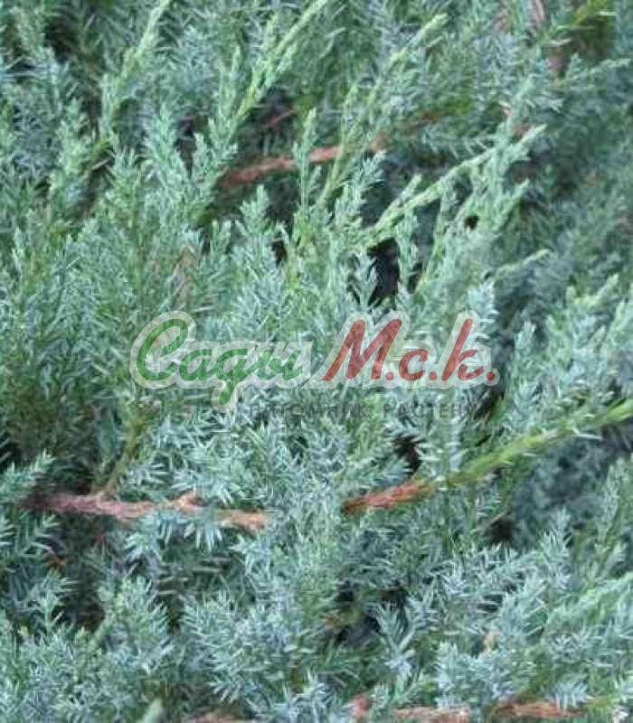 Побеги длинные и гибкие, стелющиеся, располагаются очень плотно. Хвоя голубовато-зеленая со стальным отливом, осенью приобретает фиолетово-сливовый оттенок, а с наступлением морозов – рыжевато-коричневый.