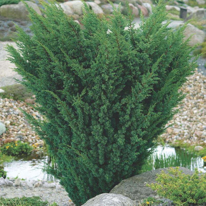 Саженцы можжевельника китайского Blaauw по доступной цене предлагает наш интернет-магазин. Взрослое растение достигает 2,5 м в высоту и около 2 м – в ширину. Форма кроны воронковидная, перистые ветви жесткие, поднятые вверх. Сорт медленнорастущий, ежегодный прирост всего 10 см в высоту и 5 см – в ширину. Крупномер китайский Blaauw морозостойкий, предпочитает солнечные участки. Можжевельник не требователен к почве, но все же предпочитает кислые или щелочные грунты. Саженцы не боятся загазованного воздуха, поэтому приживаются в городских условиях. Идеальны для формирования живой изгороди.