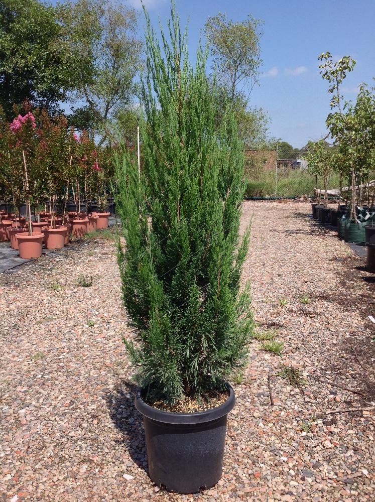 Можжевельник Spartan - дерево с плотной колоновидной или веретеновидной кроной до 6 м высотой. Скелетные ветки поднятые. Боковые веточки и побеги восходящие и вертикальные. Хвоя чисто-зеленая, в основном чешуевидная, плотно прижатая. На части побегов имеется игловидная, оттопыренная хвоя.