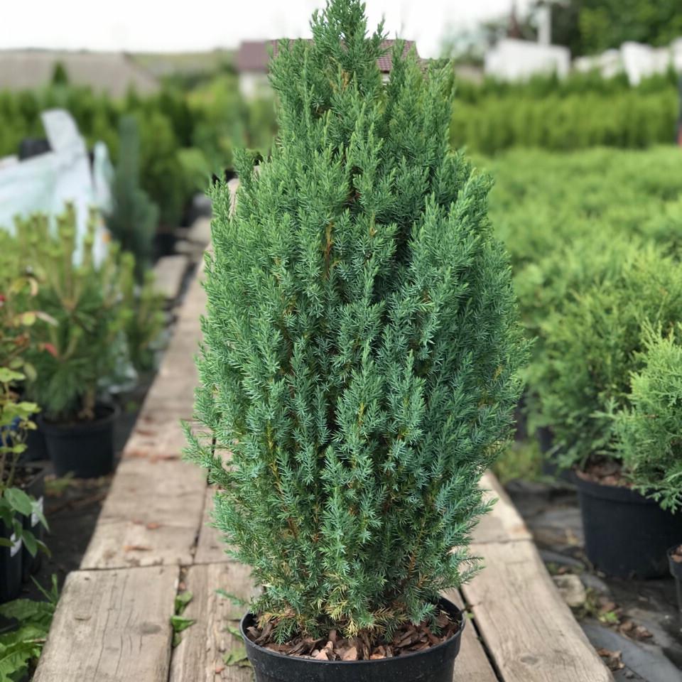 Можжевельник Stricta - сорт узко-пирамидальный с острой верхушкой, плотный. Скелетные ветки приподнятые, густые. Хвоя игловидная, голубовато-зеленая, снизу серебристая. Зимой коричневатая.