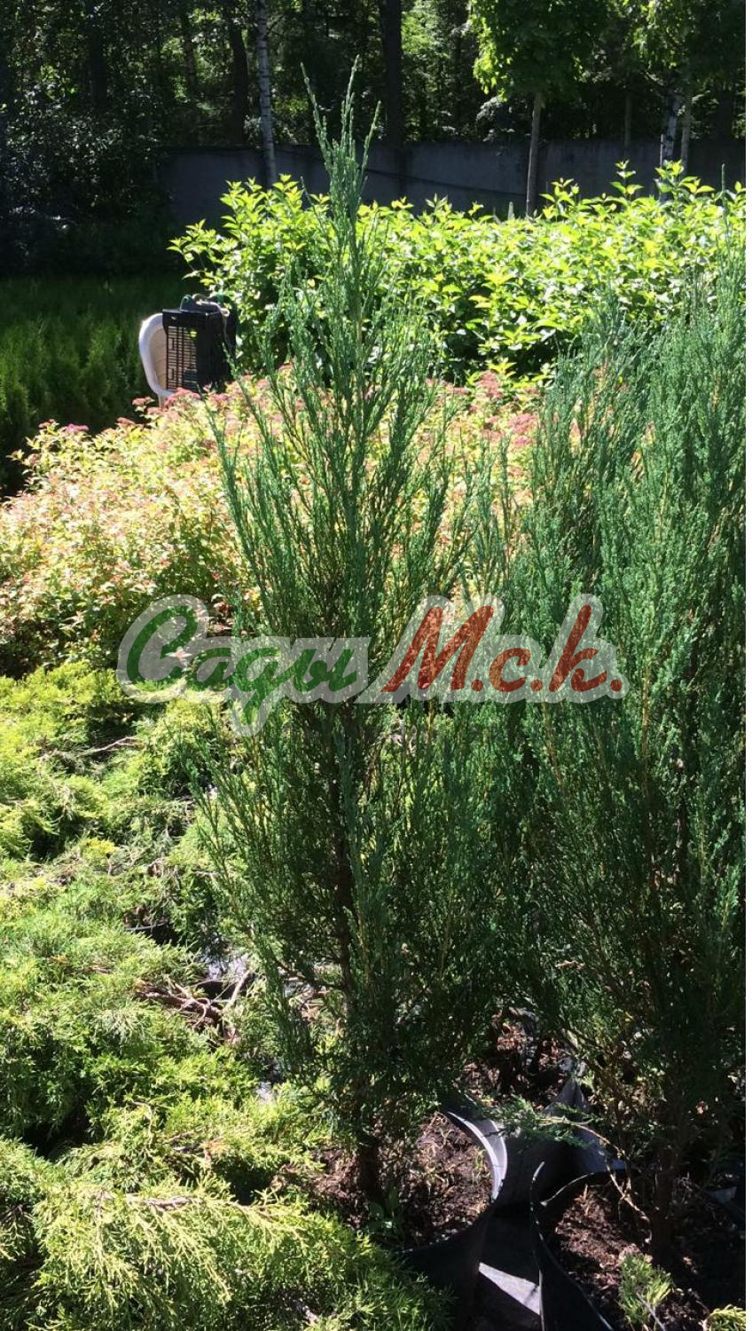 Саженцы можжевельника скального Blue Arrow , напоминающего аккуратное деревце, предлагает наш интернет-магазин. 10-летний кустарник вырастает до 2,5 м в высоту, формируя узкую крону в форме колонны шириной около 0,5 м. Ветки плотно прижаты друг к другу, вертикальные. Нижние побеги идут прямо от основания и долго сохраняют декоративный вид. Крупномер скальный Blue Arrow покрыт мягкой, чешуйчатой хвоей насыщенного голубого окраса. Можжевельник отлично приживается на любой почве, засухоустойчив, терпеливо выносит сухой воздух.