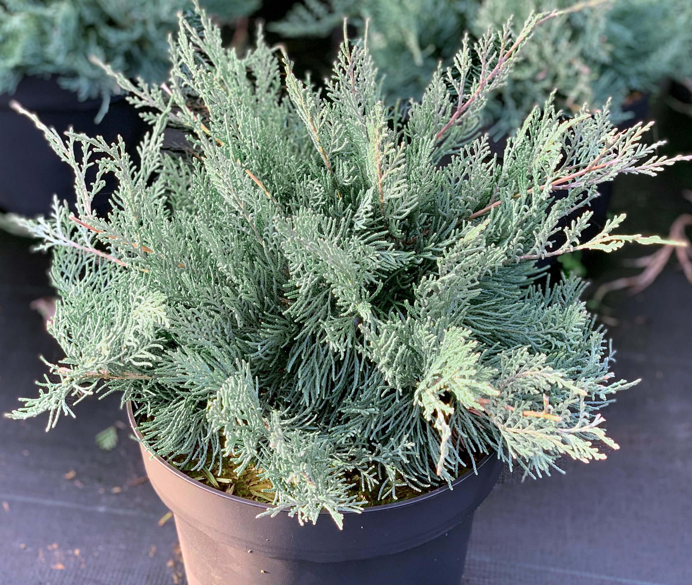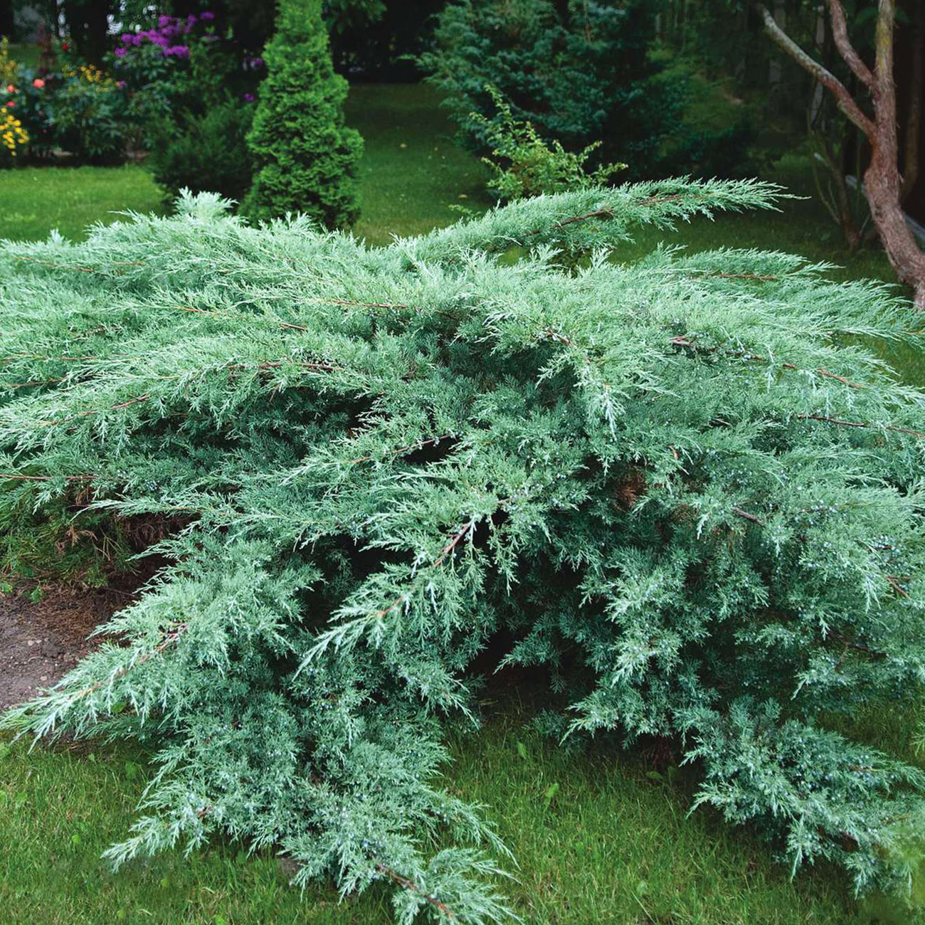 Саженцы можжевельника виргинский Grey Owl, раскидистого вечнозеленого кустарника, по привлекательной цене предлагает наш интернет-магазин. Взрослое растение достигает в высоту до 1,5 м, формируя крону диаметром около 4 м. За год побеги удлиняются на 15-20 см. Ветви растут горизонтально, лишь слегка приподняты в середине, а на концах свисают, украшенные мягкой, нитевидной хвоей серо-зеленого оттенка. Крупномер виргинский Grey Owl используется как в одиночных, так и в групповых посадках для украшения каменистых садов, аллей, создания живой изгороди. Сорт морозостойкий, светолюбив, но страдает от солнечных ожогов.