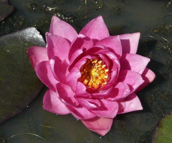 Нимфея гибридная James Brydon – кувшинка мелкого сорта с карминно-красными душистыми махровыми цветками, которые вначале имеют розовый оттенок. В сердце цветка оранжевые тычинки. Форма цветка пионовидная, диаметром в 12-14 см. Листья овальные темно-зеленые 16-20 см в диаметре, стебли гибкие, до 100 см длиной. Высаживается на солнечной стороне и в полутени в небольших водоемах на глубину в 5-70 см. Цветение обильное, кувшинки открыты с утра до раннего вечера.