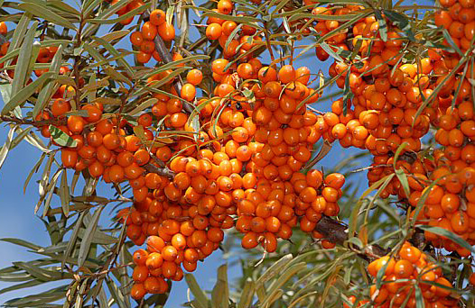 Облепиха Джемовая - срок созревания плодов поздний. Куст слаборослый, с округлой кроной средней густоты. Побеги светло-коричневые, прямые. Листья средних размеров, темно-зеленые, ланцетовидные, листовая пластинка слегка вогнутая. Плоды овальной формы, оранжево-красные, с ярким, большим пятном на верхушке плода и у основания плодоножки. Сорт универсального назначения.