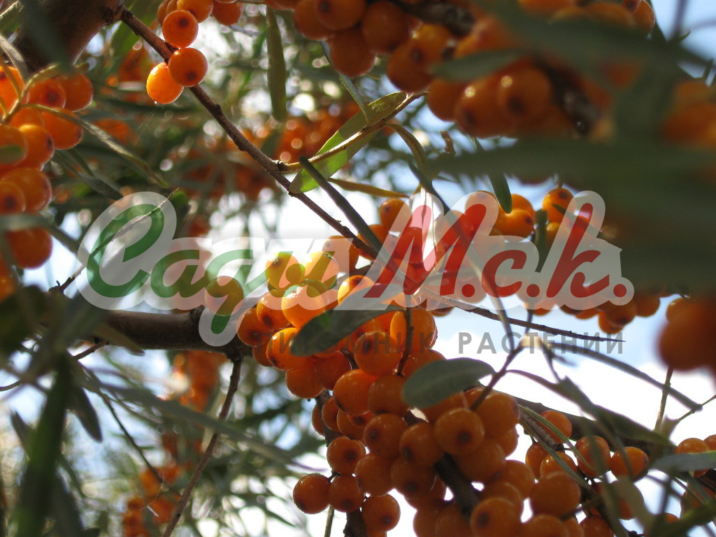 Саженцы облепихи Злата на сегодняшний день весьма востребованы. Растение среднерослое и слабораскидистое. Побеги тонкие, прямые и без колючек. Листья светло-зеленого цвета, средних размеров. Лист имеет блестящую среднеопушенную пластинку. Крупномер Злата имеет средний срок созревания и универсальное назначение.Плоды округло-овальные, оранжевого цвета, сладкого вкуса, кожица средней толщины. Плоды облепихи содержат: 1,8% кислоты, сахара 5,6% ,88 % витамина С, 2,8% масла. Ягоды крупные, собираются в плотном початке. Подходит для срезки и заморозки.