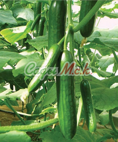 Раннеспелый партенокарпический гибрид (период от всходов до начала плодоношения 42-45 дней). Предназначен для выращивания в открытом грунте и под пленочными укрытиями. Урожайность высокая, 15-16 кг/кв. м. Растения индетерминантные, преимущественно женского типа цветения. Зеленцы цилиндрической формы, короткие, массой 80-120 г, крупнобугорчатые, черношипые. Гибрид устойчив к вирусу огуречной мозаики и настоящей мучнистой росе. Отличный вкус плодов, отсутствие горечи, делает их незаменимыми для потребления в свежем виде и консервирования. Посев семян в грунт или на рассаду. Возраст рассады при высадке 20-30 дней. Плотность посадки в открытом грунте 4-5 растений, в теплицах 2-3 растения на 1 кв.м. В теплицах растения подвязывают к шпалере и формируют в один стебель. Боковые побеги прищипывают над 2-3 листом. Растениям необходимы регулярные поливы, прополки, рыхления и подкормки. Сбор плодов нужно проводить регулярно каждые 2-3 дня.