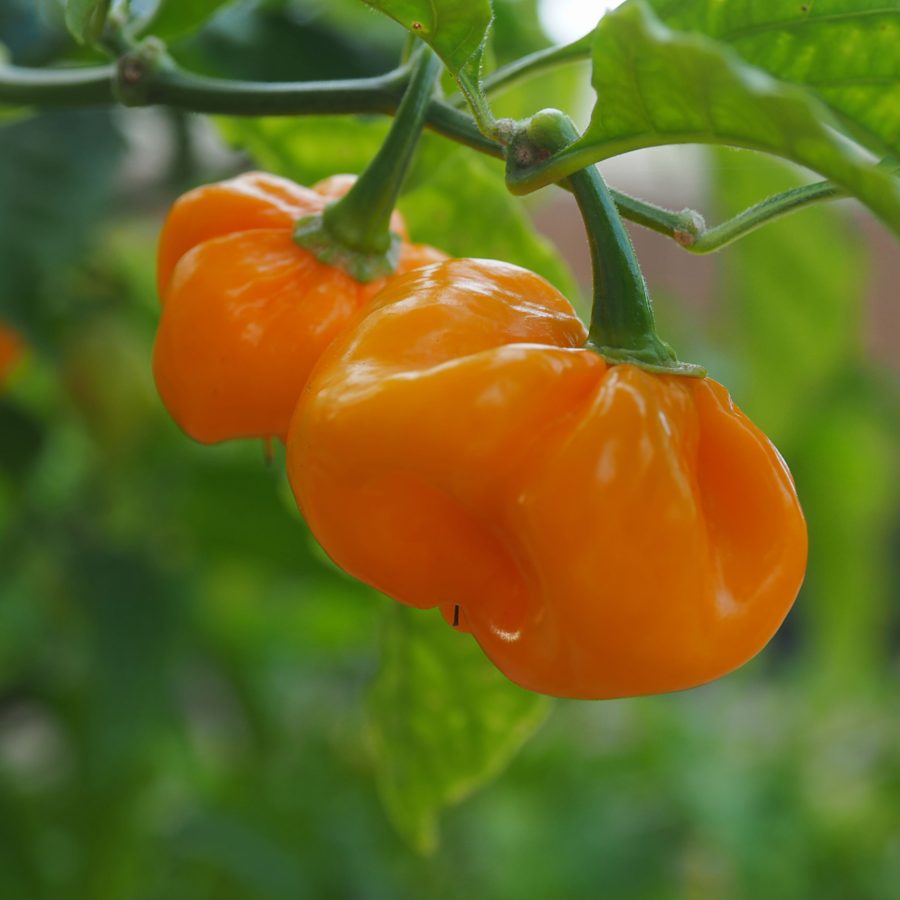 Знаменитый супер жгучий перец попавший за свою остроту в книгу рекордов Гиннеса.Однако свою всемирную известность перец Хабанеро получил не только благодаря исключительной остроте – этот перец является мощнейшим природным афродизиаком. Родина Хабанеро Бразилия, Мексика и Карибские острова. Свое название перец получил в честь столицы Кубы – Хабанеро – перец из Гаваны. Является одним из самых острых перцев в мире. По шкале Сковилла, характеризующей остроту перца, оценивается в 350 000 единиц (для сравнения Кайенский чили имеет 30 000 единиц). Помимо остроты Хабанеро обладает исключительным ароматом. Благодаря этим качествам применяется в качестве острой специи к многочисленным блюдам и входит в состав многих знаменитых соусов (например, таких как Табаско).Перец Хабанеро (Capsicum chinense Jacquin) – многолетний кустарник – прекрасное растение для контейнерной или горшечной культуры.Растение ветвистое с небольшими ланцетовидными листьями. Плоды небольшие – длиной 3-4 см., шириной до 2 см., на длинной плодоножке, неровной конусовидной формы, часто со складочками и морщинками. Стенки плодика тонкие. В технической спелости плод зеленый, в биологической оранжевый.Выращивается рассадным способом. Семена высевают в рассадные ящички в специально подготовленную почву (2 части дерновой земли, 2 части перегноя, 1 часть песка), слегка присыпают сверху и содержат при температуре 20-25°С. Когда сеянцы сформируют 2 настоящих листочка, их пикируют в горшочки диаметром 10 см. В постоянный горшок или контейнер растение пересаживают, когда начнется ветвление и сформируется 8-10 настоящих листочков.При работе с семенами и плодами необходимо соблюдать осторожность.