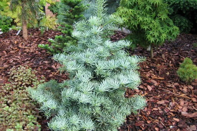 Пихта одноцветная Blue Safir - миниатюрный сорт. В 10 лет высота растения достигает 0,3 м. Крона подушковидная, очень плотная. Хвоя короткая, голубая.
