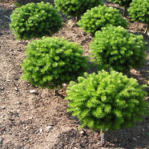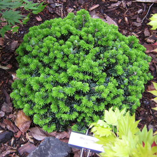 Пихта корейская Cis - карликовый компактный хвойный кустарник, с округлой кроной. Высотой 0,8-1 м., диаметром кроны до 1,5 м. Растет медленно, по 3-4 см. в год. Хвоя темно-зеленого цвета, мягкая, блестящая, 0,8-1,2 см. длиной. Шишки фиолетово-пурпурного цвета, длиной 5-7 см. и толщиной около 2 см., растут вверх. Предпочитает солнечные участки, суглинистые и супесчаные в меру увлажненные почвы. Морозостойкая. Подходит для выращивая в контейнерах.