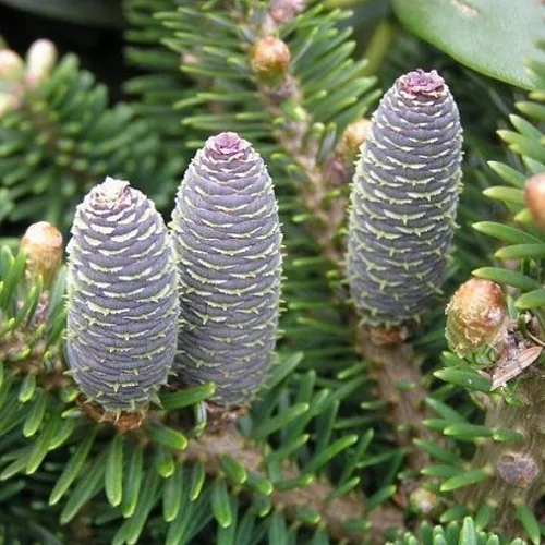Пихта корейская Molly - карликовый сорт корейской пихты с пышной конусообразной кроной, достигает в высоту до 4 м и 3 м в диаметре. Хвоя короткая, 2-3 см в длину, мягкая, двухцветная: сверху темно-зеленая и глянцевая, снизу серебристая за счет двух продольных полосок. Шишки длинной до 5 см, сине-фиолетового цвета, направлены вверх. Кора красно-коричневая, шероховатая (в молодости серая и гладкая). Сорт используют в одиночных и групповых посадках в озеленении городских парковых зон, приусадебных участков. Эта пихта может стать живым рождественским украшением в небольшом саду, на опушке. Живет до 300 лет.