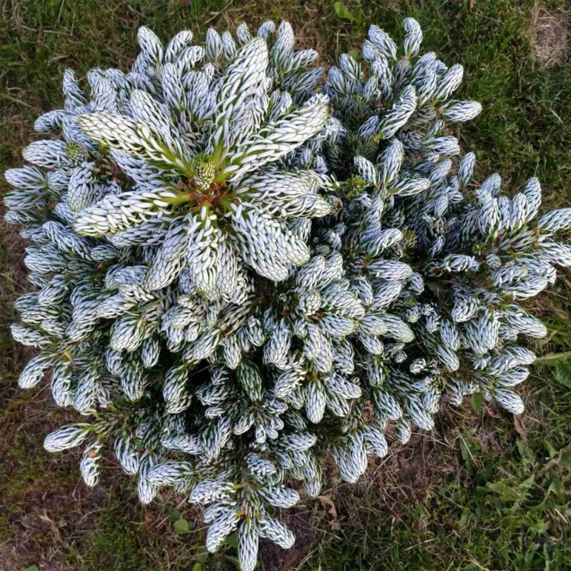 Пихта корейская Silberlocke - медленно растущее, ширококоническое дерево высотой до 10-15 м. Хвоя короткая, сильно изогнутая так, что видна нижняя белая сторона. Образует многочисленные фиолетово-синие шишки. Крона широкая, форма может быть разнообразной в зависимости от способа формирования, часто с несколькими вершинами. Многочисленные фиолетовые шишки, длиной до 7 см, прямостоячие, очень декоративные, часто с крупными каплями ароматной смолы, даже на молодых растениях. Особенность сорта - загнутые вверх хвоинки, которые открывают серебристо-белую изнанку, отчего все растение переливается.
