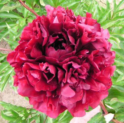 Травянистый пион Maestro махровый с открытым центром. Запах слабый. Средний срок цветения. Цветок диаметром 16 см. Тёмно-красный с каштановым оттенком, центр заполнен ярко-желтыми тычинками. Куст высотой 80 см. Стебли прочные. Листья тёмно - зелёные, блестящие.