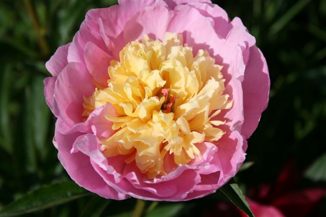 Саженцы пиона Show Girl сегодня приобрели широкую популярность во всем мире. Их соцветия имеют японскую форму, наружные широкие лепестки в один ряд отличаются нежно-розовым оттенком, более темным у основания. Внутренние светло-желтые лепестки вытянутые и тонкие с обрезанным краем отлично сочетаются с приятным оттенком бутона. Стебли мощные и прочные, на них располагается светло-зеленая листва, отлично гармонирующая с шикарными соцветиями. Срок цветения пиона Show Girl средне-ранний, в этот период крупные цветки красиво покрывают верхушку куста. Данный сорт устойчив к перепадам температур и морозам, ему не страшны холодные зимы.