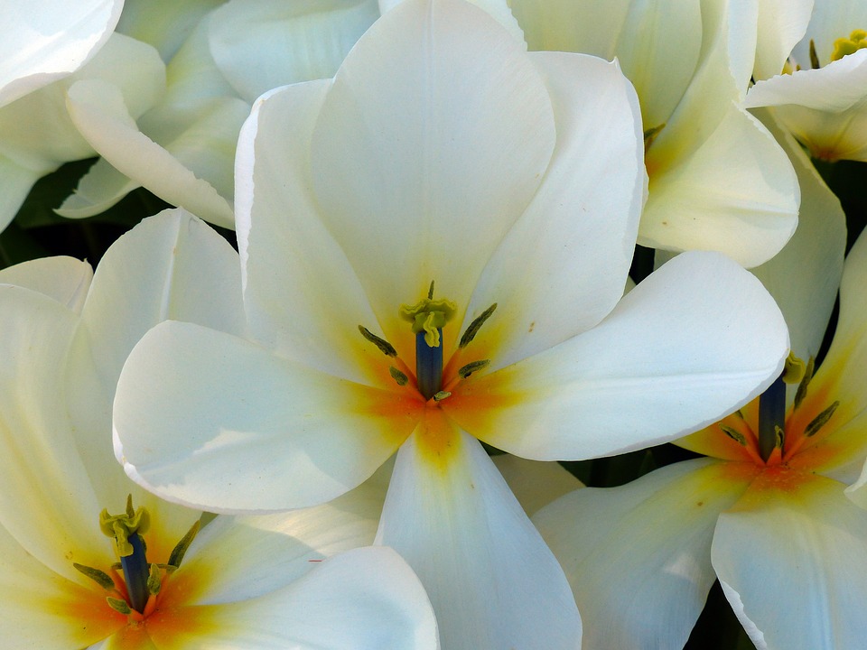 Plumeria Kao Puang производит большие соцветия красивых, нежных, простых цветков с оранжево-желтым основанием. Лепестки снежно-белые, тонкие, продолговатые. Аромат цветков очень приятный.
