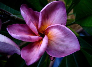 Plumeria Maung Jack - очень привлекательное, засухоустойчивое растение, подходит для выращивания в контейнерах. Цветки крупные, фиолетовые с темно-фиолетовыми жилками. Центр оранжевый. Лепестки завернутые, широкие.