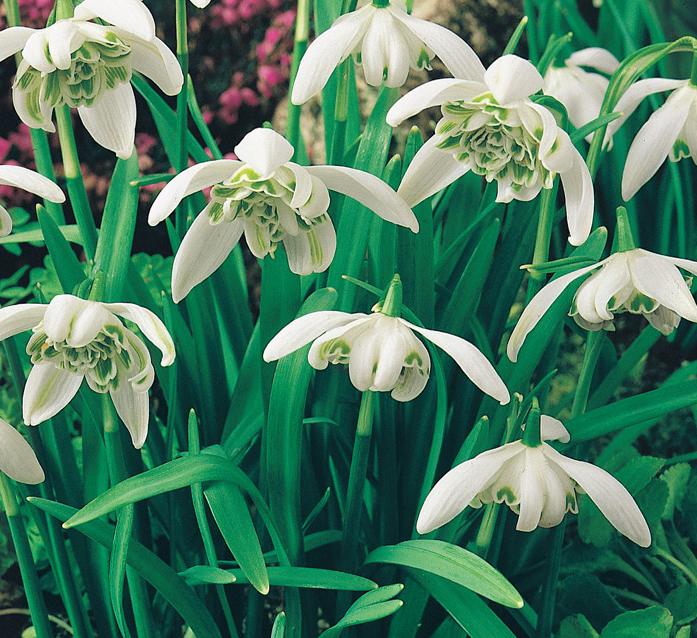 Ароматный подснежник высота: 9-15 см , с очаровательными махровыми цветками, множество внутренних лепестков которых украшены зелеными и бледно-желтыми штрихами. В садах с 1731г.