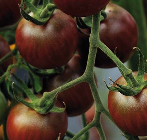 Скороспелый,сладкий, 100% сибирский! Темноплодный скороспелый черри-сорт селекции АФ «Сибирский сад», на 100% приспособленный к сибирским условиям. Устойчив к основным заболеваниям.Растение развитое,крепкое,высотой 0,6м (в открытом грунте), 1,6м (в теплице). После 5 листа формирует обильные грозди из 30-40 миниатюрных плодов. Томаты массой 25-35г, выровненные по форме и размеру, округлые с темно-малиновой мякотью, сладкие и сочные как виноград.