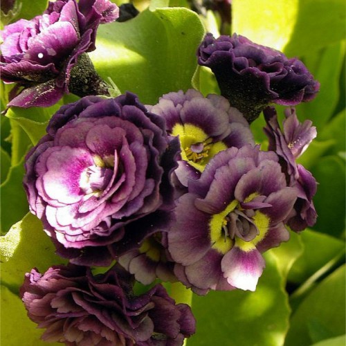 Примула Xaver - растение высотой около 20 см. Листва крупная, округлой формы, зеленого окраса. Период цветения - апрель-июнь. Цветки махровые. Меняют цвет за время цветения от лилового до темно-лилового, почти фиолетового. Сорт лучше растет в полутени. Зимует без укрытия.