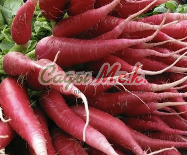 Скороспелый (18-20 дней от всходов до технической спелости) сорт. Корнеплод удлиненно-цилиндрический с розовой верхней частью и белым кончиком, массой 17-20 г. Мякоть белая, плотная, слабоострого вкуса. Сорт ценится за дружное раннее созревание и отличный вкус. Предпочитает легкие структурированные хорошо удобренные почвы. Посев в грунт проводится в течении всего сезона: с конца апреля до начала мая, повторно — с середины июля по конец августа. Урожай редиса весь сезон!