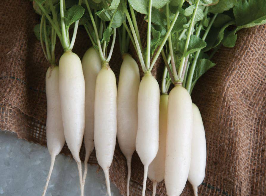 Редис White Icicle - летний сорт. Ботва крупная, насыщенно-зеленого цвета. Корнеплоды цилиндрическо-конические, продолговатые, белого цвета, рекомендуются к сбору при длине 8-15 см. Мякоть хрустящая, хорошего вкуса.